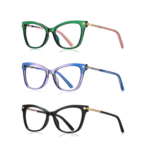 Gafas ópticas TR90 de ojo de gato, gafas populares con bloqueo de luz azul, monturas de gafas para mujer, bisagra de resorte para ordenador, cristal